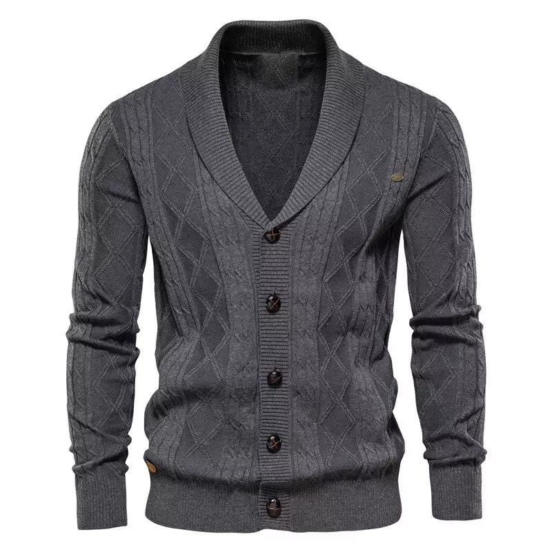 Men’s Cardigan Sweater Knitting Winter Full Zipper Long Sleeve Dark Grey