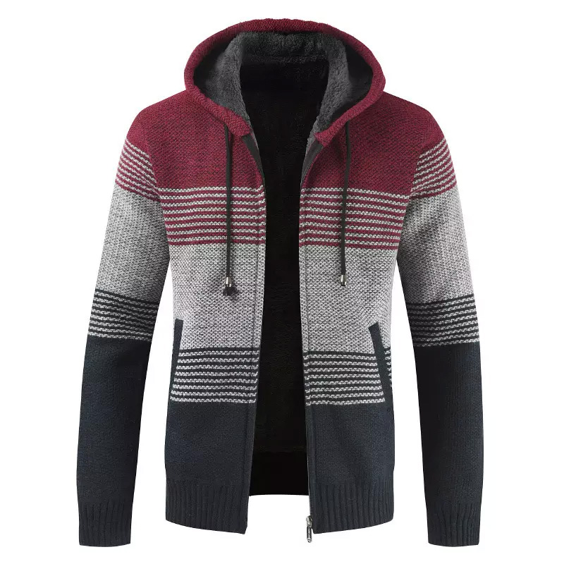 Men’s Cardigan Sweater Knitting Winter Full Zipper Long Sleeve Wine Red